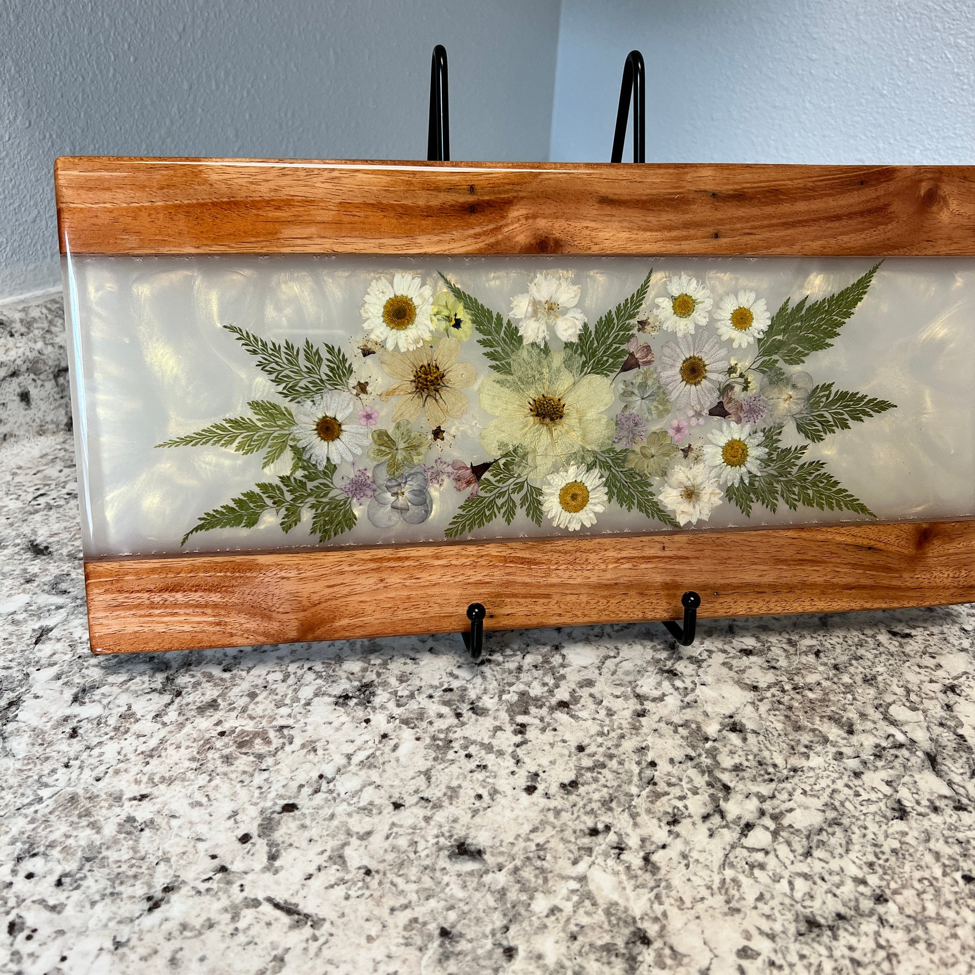 Maui Island Koaiʻa Resin Charcuterie Board with dried pressed flowers. (approx 8"x16”)